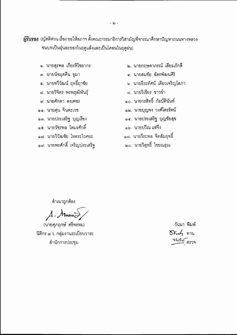 (๑๐) ญัตติ เรื่อง ขอให้สภาฯ ตั้งคณะกรรมาธิการวิสามัญพิจารณาศึกษาปัญหาถนนทางหลวงชนบทเป็นฝุ่นละอองในฤดูแล้งและเป็นโคลนในฤดูฝน (นายอำนวย คลังผา และนายไพจิต ศรีวรขาน เป็นผู้เสนอ) |