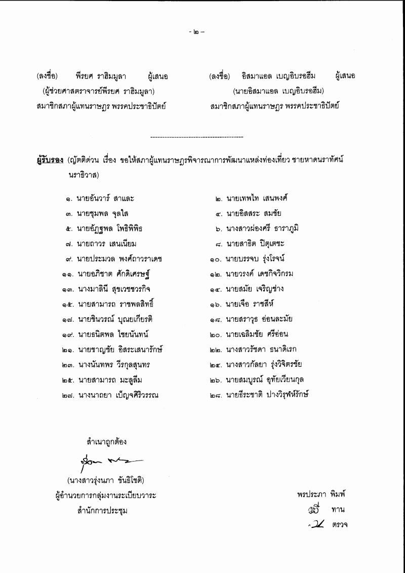 (1) ญัตติ เรื่อง ขอให้สภาผู้แทนราษฎรพิจารณาการพัฒนาแหล่งท่องเที่ยว ชายหาดนราทัศน์ นราธิวาส (นายเจะอามิง โตะตาหยง กับคณะ เป็นผู้เสนอ) |