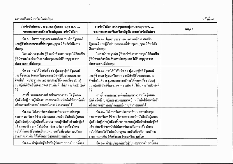 ตารางเปรียบเทียบร่างข้อบังคับการประชุมสภาผู้แทนราษฎร พ.ศ. ....