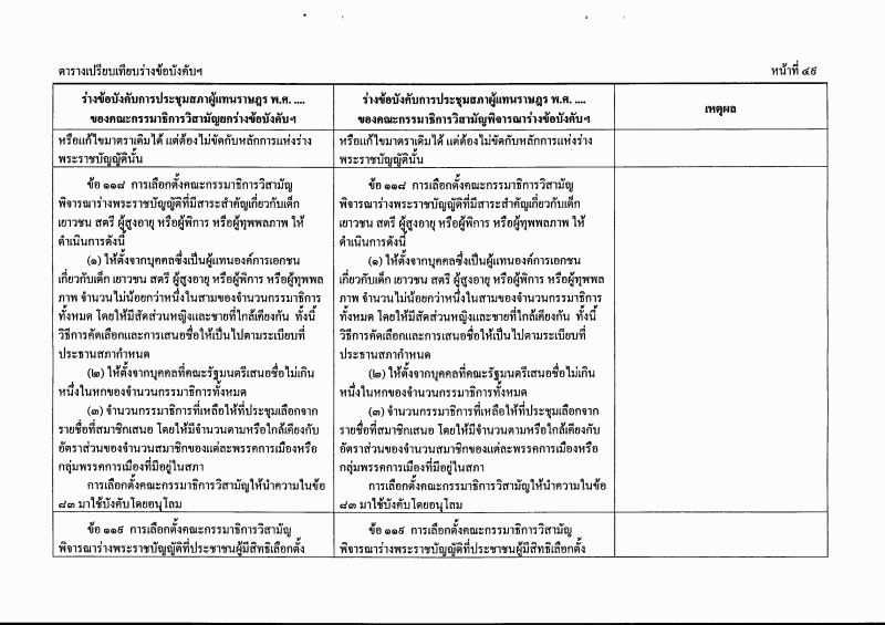 ตารางเปรียบเทียบร่างข้อบังคับการประชุมสภาผู้แทนราษฎร พ.ศ. ....