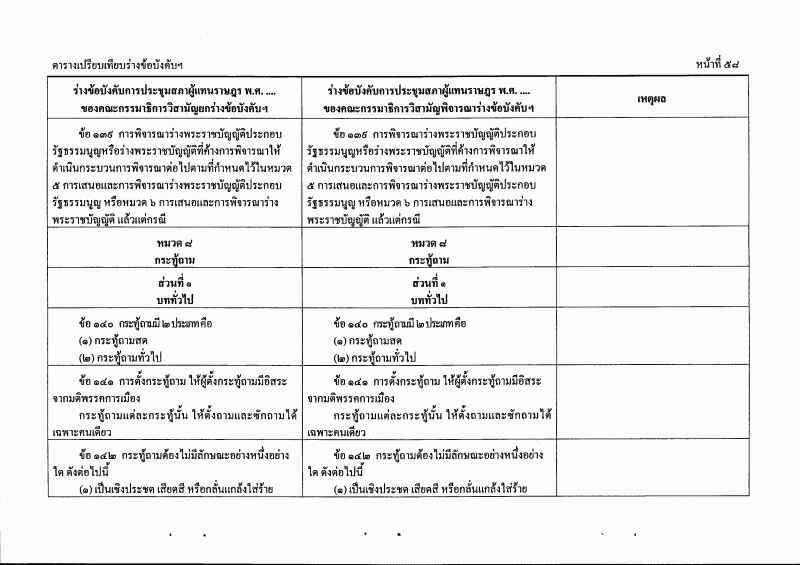 ตารางเปรียบเทียบร่างข้อบังคับการประชุมสภาผู้แทนราษฎร พ.ศ. ....