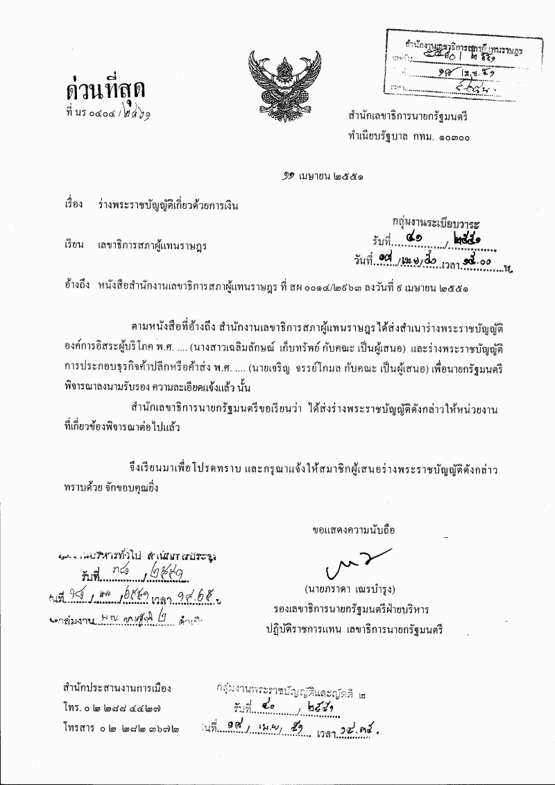 ร่างพระราชบัญญัติองค์การอิสระผู้บริโภค พ.ศ. .... (นางสาวเฉลิมลักษณ์ เก็บทรัพย์ กับคณะ เป็นผู้เสนอ) และร่างพระราชบัญญัติการประกอบธุรกิจค้าปลีกหรือค้าส่ง พ.ศ. .... (นายเจริญ จรรย์โกมล กับคณะ เป็นผู้เสนอ) |