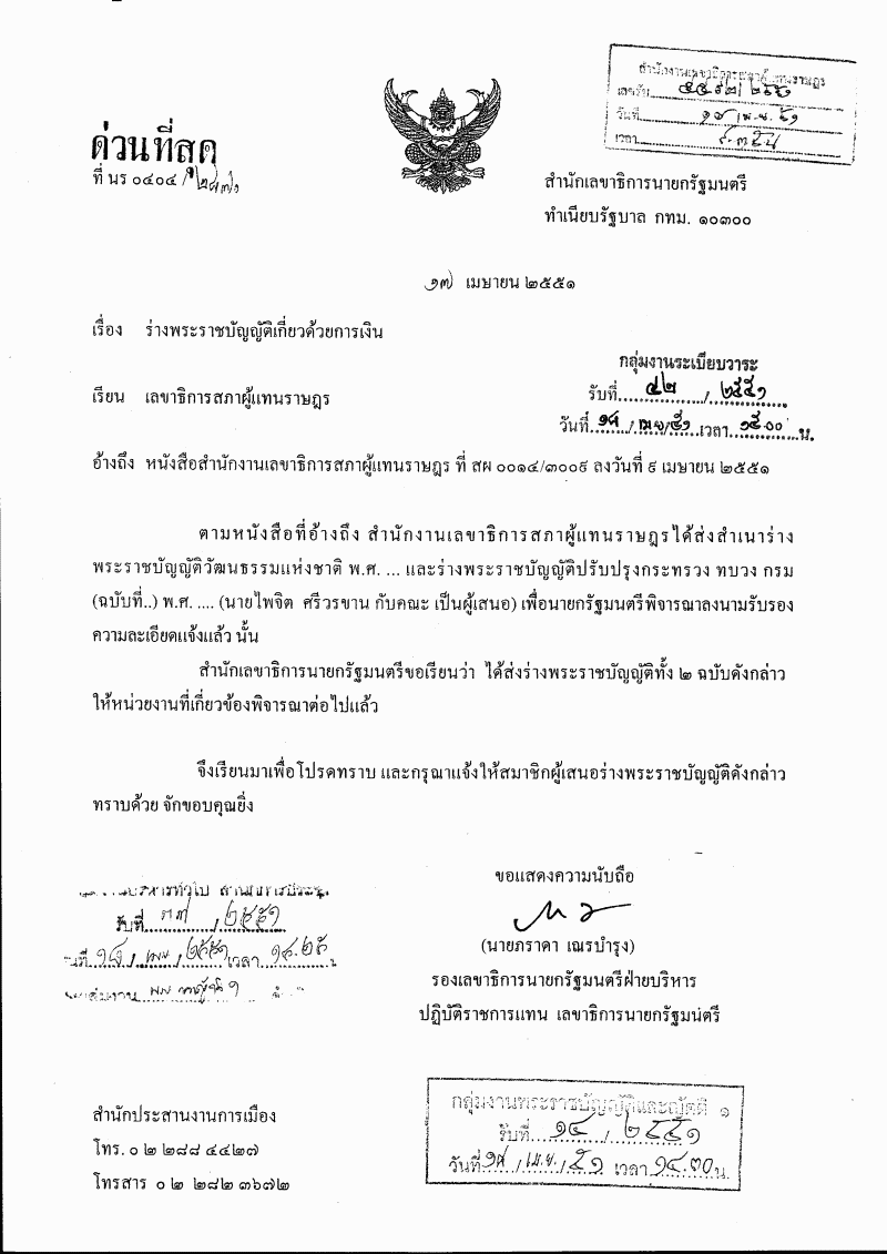 ร่างพระราชบัญญัติวัฒนธรรมแห่งชาติ พ.ศ. .... (นายไพจิต ศรีวรขาน กับคณะ เป็นผู้เสนอ) และร่างพระราชบัญญัติปรับปรุงกระทรวง ทบวง กรม (ฉบับที่ ..) พ.ศ. .... (นายไพจิต ศรีวรขาน กับคณะ เป็นผู้เสนอ) |