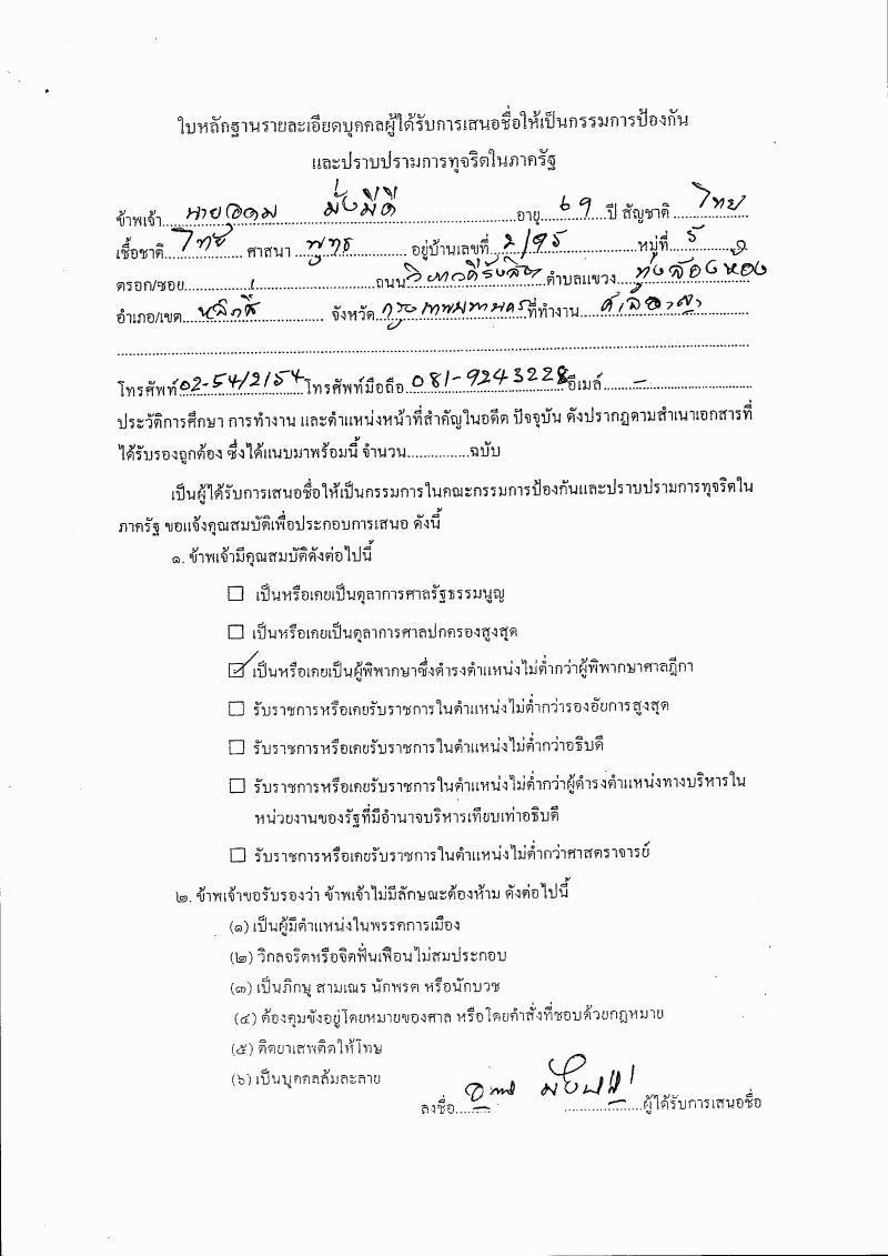 ชื่อเอกสาร :   พิจารณาให้ความเห็นชอบการสรรหากรรมการป้องกันและปราบปรามการทุจริตในภาครัฐ (คณะรัฐมนตรี เป็นผู้เสนอ)