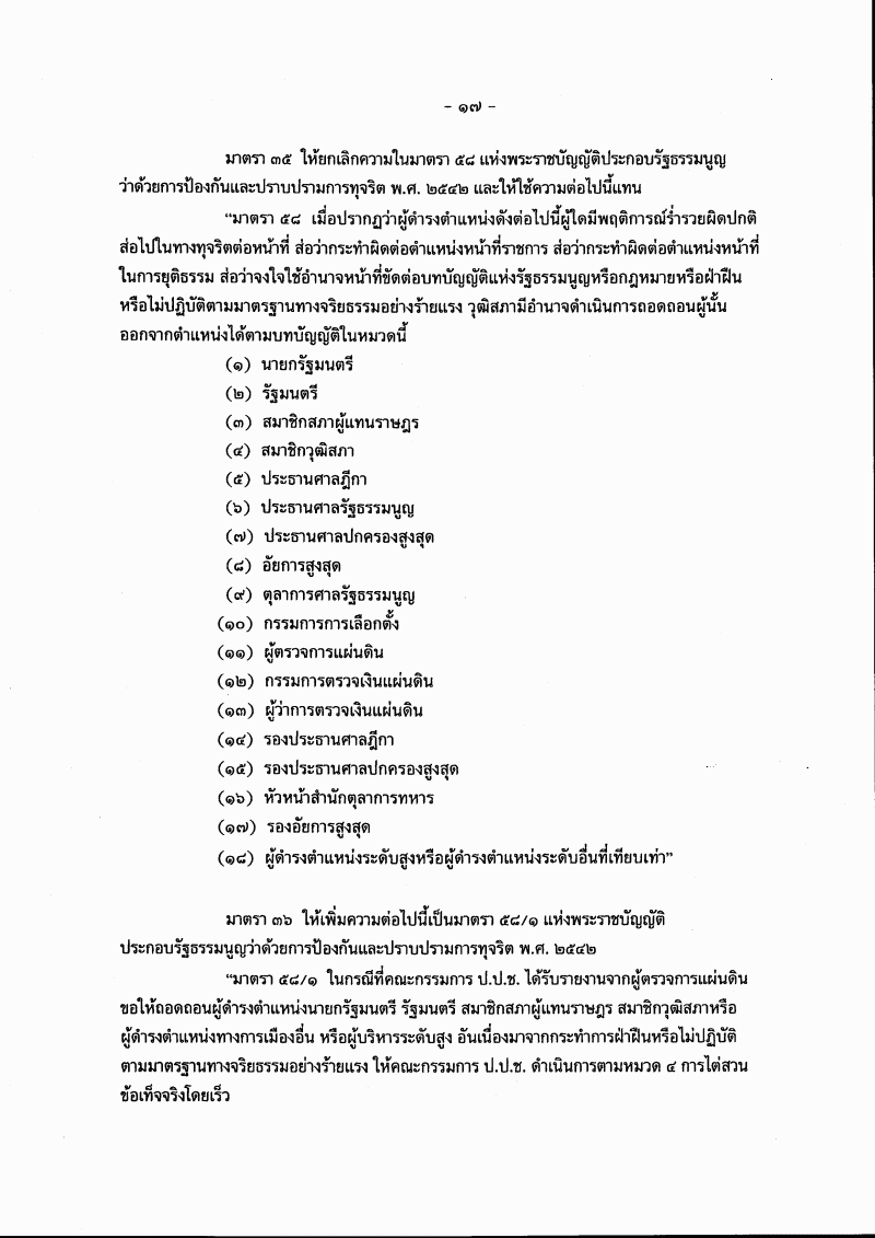 ชื่อเอกสาร :   (1) ร่างพระราชบัญญัติประกอบรัฐธรรมนูญว่าด้วยการป้องกันและปราบปรามการทุจริต (ฉบับที่ ..) พ.ศ. .... (นายนิพิฏฐ์ อินทรสมบัติ กับคณะ เป็นผู้เสนอ)