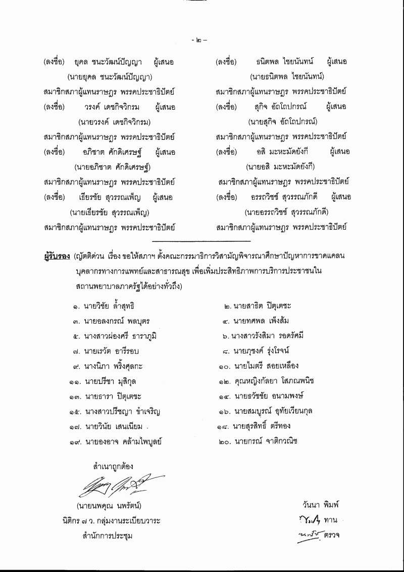 (6) ญัตติ เรื่อง ขอให้สภาฯ ตั้งคณะกรรมาธิการวิสามัญพิจารณาศึกษาปัญหาการขาดแคลนบุคลากรทางการแพทย์และสาธารณสุข เพื่อเพิ่มประสิทธิภาพการบริการประชาชนในสถานพยาบาลภาครัฐได้อย่างทั่วถึง (นายบัญญัติ เจตนจันทร์ กับคณะ เป็นผู้เสนอ) |