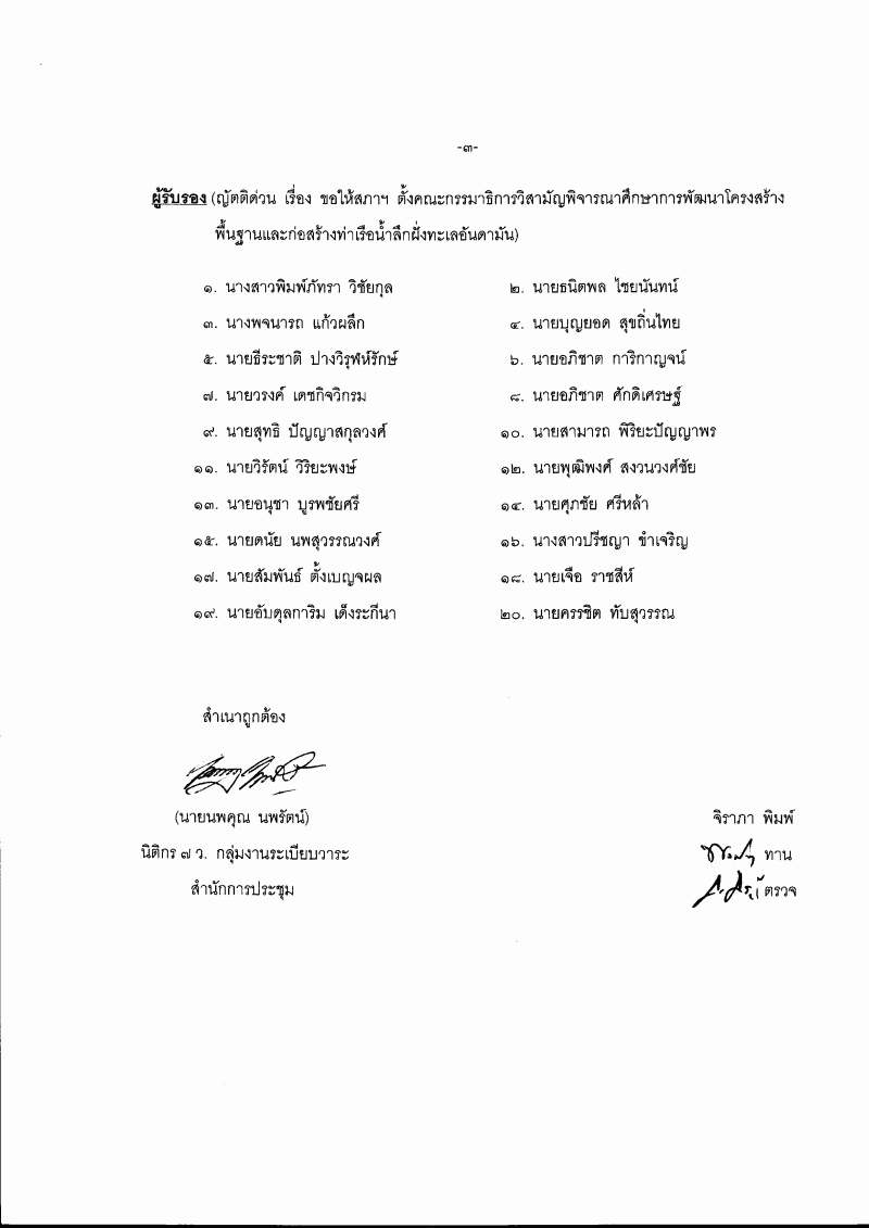 • ญัตติด่วน เรื่อง ขอให้สภาฯ ตั้งคณะกรรมาธิการวิสามัญพิจารณาศึกษาการพัฒนาโครงสร้างพื้นฐานและก่อสร้างท่าเรือน้ำลึกฝั่งทะเลอันดามัน (นายสมบูรณ์ อุทัยเวียนกุล กับคณะ เป็นผู้เสนอ)