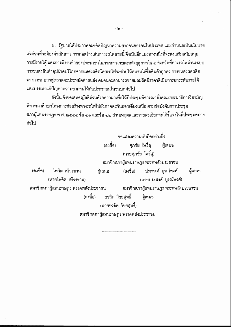 (9) ญัตติ เรื่อง ขอให้สภาผู้แทนราษฎรตั้งคณะกรรมาธิการวิสามัญพิจารณาศึกษาโครงการก่อสร้างทางรถไฟไปยังภาคตะวันออกเฉียงเหนือ (นายศุภชัย โพธิ์สุ กับคณะ เป็นผู้เสนอ) |