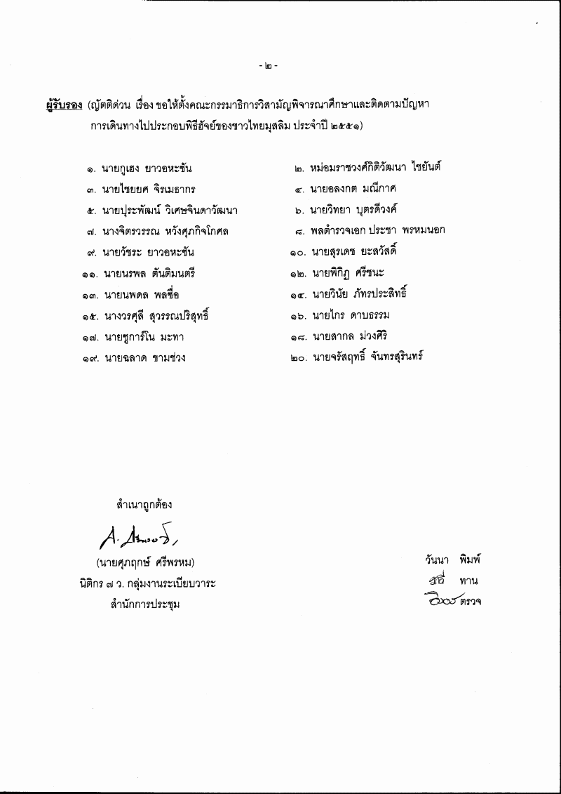 (12) ญัตติ เรื่อง ขอให้ตั้งคณะกรรมาธิการวิสามัญพิจารณาศึกษาและติดตามปัญหาการเดินทางไปประกอบพิธีฮัจย์ของชาวมุสลิม ประจำปี ๒๕๕๑ (นายนิมุคตาร์ วาบา เป็นผู้เสนอ) |