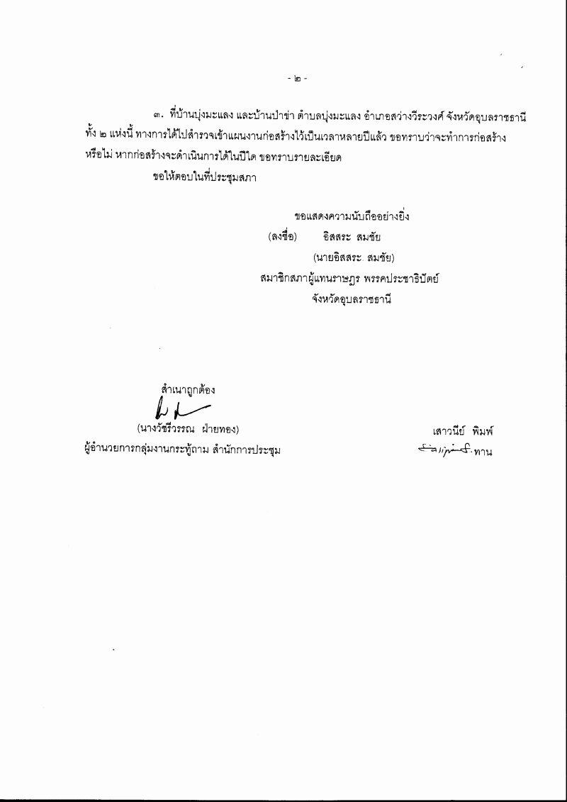 • กระทู้ถามที่ ๐๓๕ เรื่อง โครงการที่ได้รับผลกระทบจากเขื่อนปากมูล นายอิสสระ สมชัย เป็นผู้ตั้งกระทู้ถาม ถามรัฐมนตรีว่าการกระทรวงเกษตรและสหกรณ์