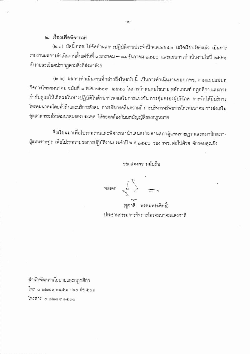 รับทราบรายงานผลการปฏิบัติงานของคณะกรรมการกิจการโทรคมนาคมแห่งชาติประจำปี พ.ศ. ๒๕๕๐ |
