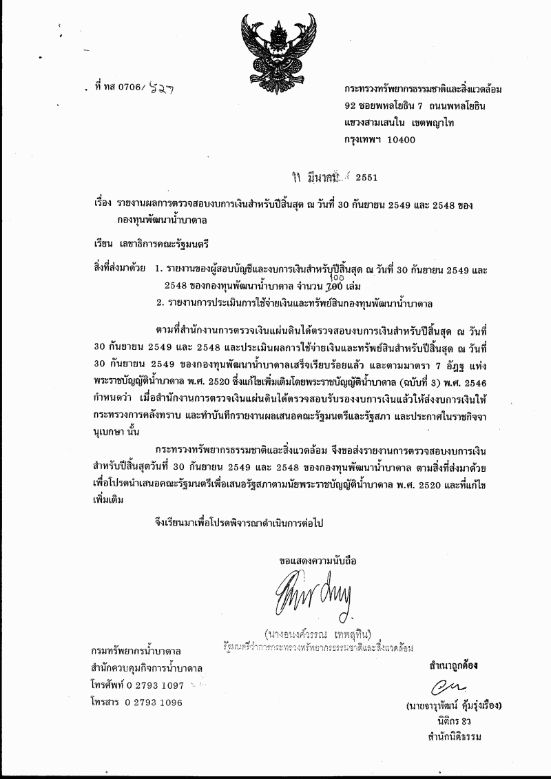 • รับทราบรายงานการสอบบัญชีและงบการเงินกองทุนพัฒนาน้ำบาดาล สำหรับปีสิ้นสุด วันที่ ๓๐ กันยายน ๒๕๔๙ และ ๒๕๔๘