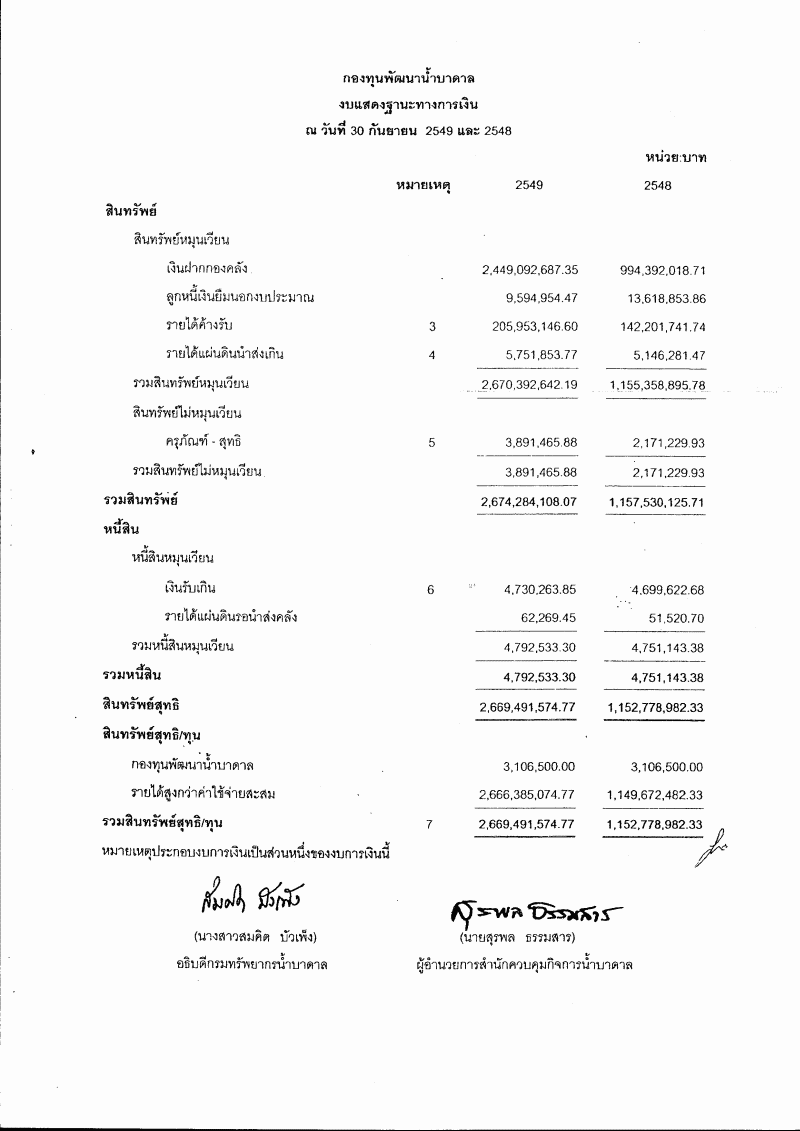 ชื่อเอกสาร :   รับทราบรายงานการสอบบัญชีและงบการเงินกองทุนพัฒนาน้ำบาดาล สำหรับปีสิ้นสุด วันที่ ๓๐ กันยายน ๒๕๔๙ และ ๒๕๔๘