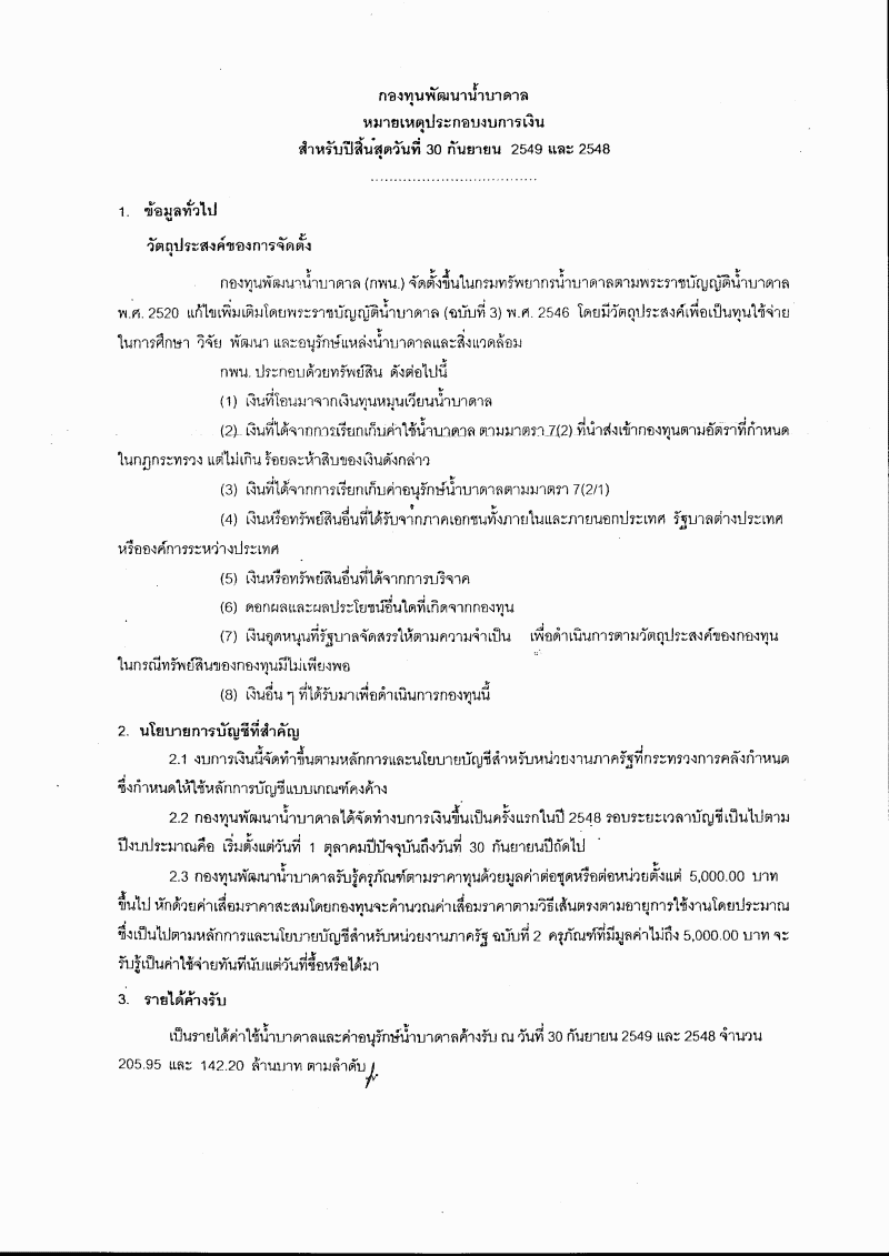 • รับทราบรายงานการสอบบัญชีและงบการเงินกองทุนพัฒนาน้ำบาดาล สำหรับปีสิ้นสุด วันที่ ๓๐ กันยายน ๒๕๔๙ และ ๒๕๔๘