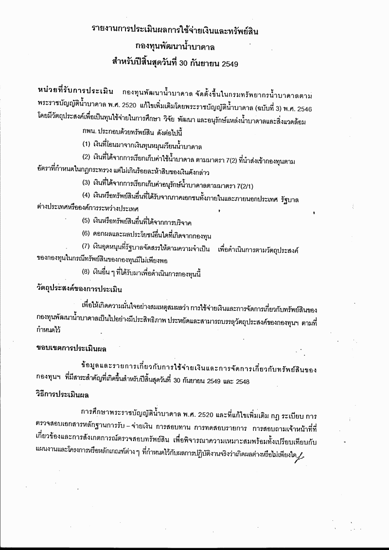 • รับทราบรายงานการสอบบัญชีและงบการเงินกองทุนพัฒนาน้ำบาดาล สำหรับปีสิ้นสุด วันที่ ๓๐ กันยายน ๒๕๔๙ และ ๒๕๔๘