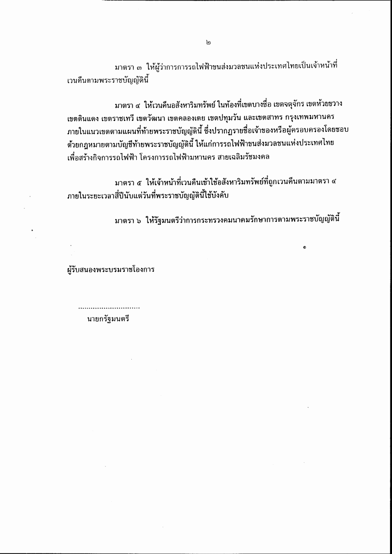 ชื่อเอกสาร :   (26) ร่างพระราชบัญญัติเวนคืนอสังหาริมทรัพย์เพื่อสร้างกิจการรถไฟฟ้า โครงการรถไฟฟ้ามหานคร สายเฉลิมรัชมงคล ในท้องที่เขตบางซื่อ เขตจตุจักร เขตห้วยขวาง เขตดินแดง เขตราชเทวี เขตวัฒนา เขตคลองเตย เขตปทุมวัน และเขตสาทร กรุงเทพมหานคร พ.ศ. .... (คณะรัฐมนตรี เป็นผู้เสนอ)