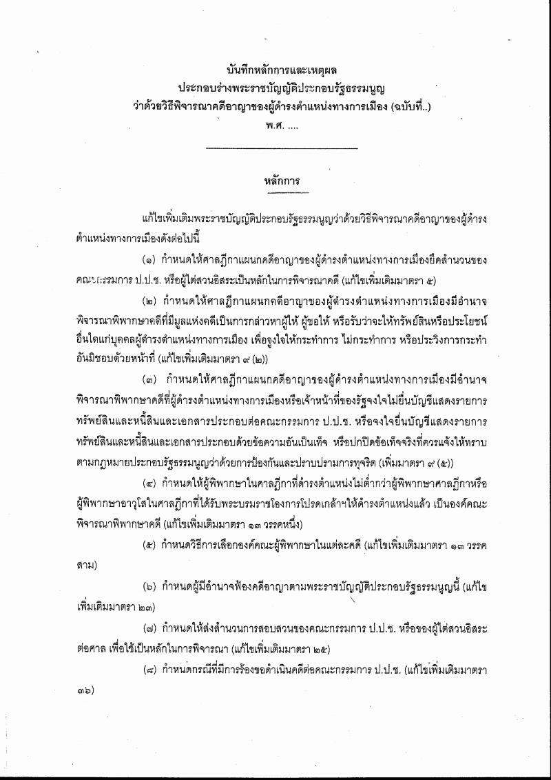 ชื่อเอกสาร :   (28) ร่างพระราชบัญญัติประกอบรัฐธรรมนูญว่าด้วยวิธีพิจารณาคดีอาญาของผู้ดำรงตำแหน่งทางการเมือง (ฉบับที่ ..) พ.ศ. .... (ศาลฎีกา เป็นผู้เสนอ)