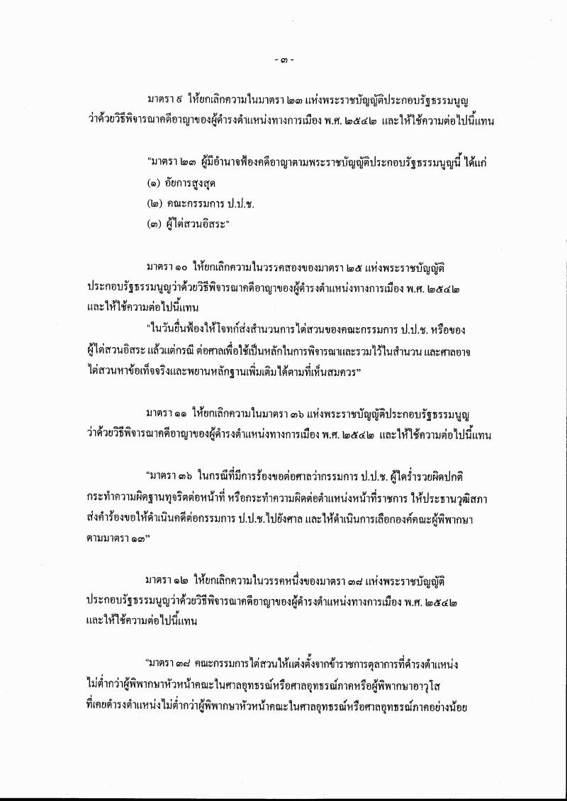 ชื่อเอกสาร :   (28) ร่างพระราชบัญญัติประกอบรัฐธรรมนูญว่าด้วยวิธีพิจารณาคดีอาญาของผู้ดำรงตำแหน่งทางการเมือง (ฉบับที่ ..) พ.ศ. .... (ศาลฎีกา เป็นผู้เสนอ)