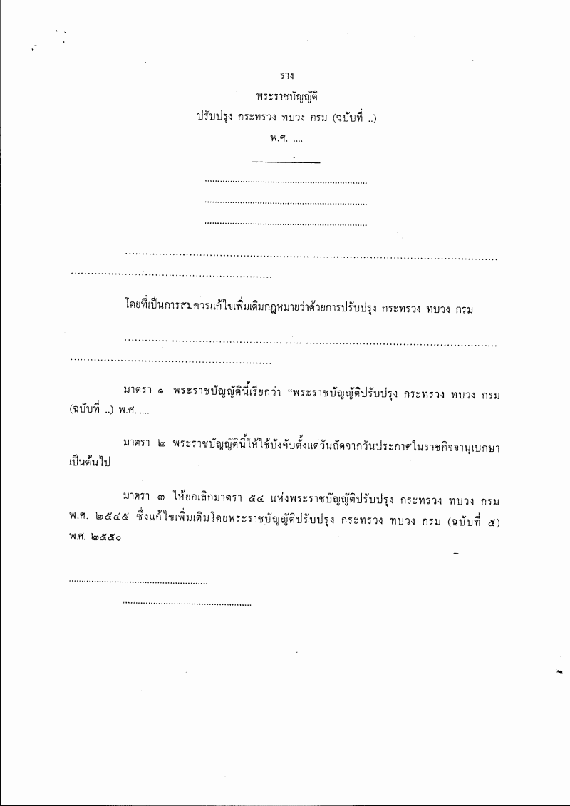 ชื่อเอกสาร :   (1) ร่างพระราชบัญญัติปรับปรุง กระทรวง ทบวง กรม (ฉบับที่ ..) พ.ศ. .... (นายเจริญ จรรย์โกมล กับคณะ เป็นผู้เสนอ)