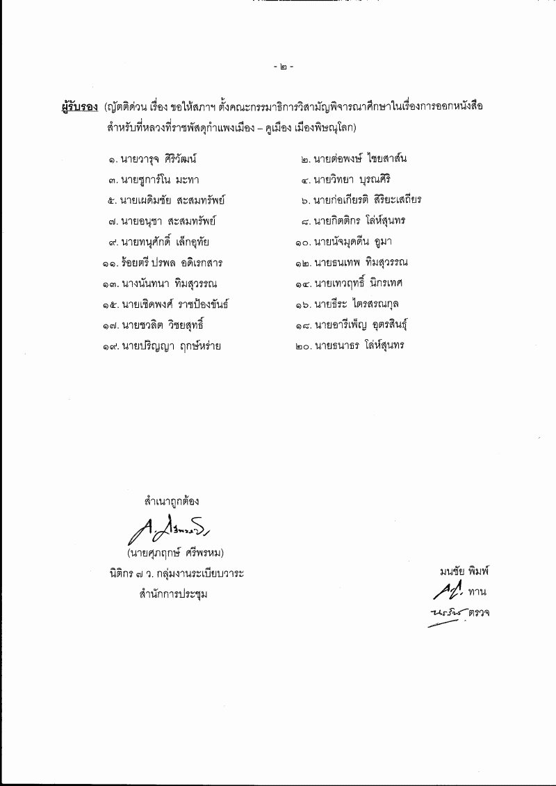 (16) ญัตติ เรื่อง ขอให้สภาฯ ตั้งคณะกรรมาธิการวิสามัญพิจารณาศึกษาในเรื่องการออกหนังสือสำหรับที่หลวงที่ราชพัสดุกำแพงเมือง - คูเมือง เมืองพิษณุโลก (นายมนต์ชัย วิวัฒน์ธนาฒย์ และนายนิยม ช่างพินิจ เป็นผู้เสนอ) |