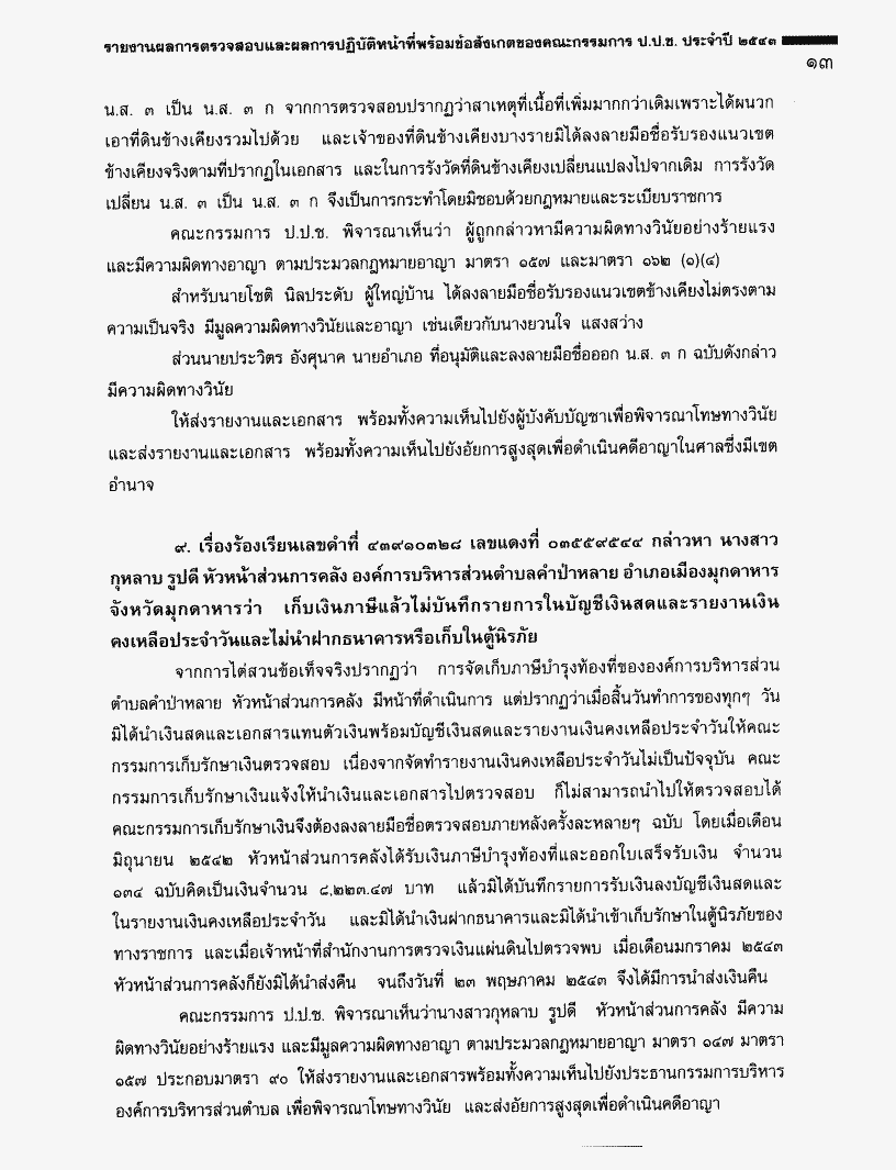 • รายงานผลการตรวจสอบและผลการปฏิบัติหน้าที่พร้อมข้อสังเกตของคณะกรรมการ ป.ป.ช. ประจำปี 2543