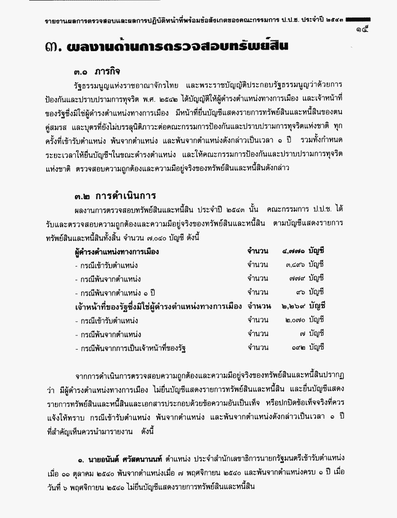 • รายงานผลการตรวจสอบและผลการปฏิบัติหน้าที่พร้อมข้อสังเกตของคณะกรรมการ ป.ป.ช. ประจำปี 2543