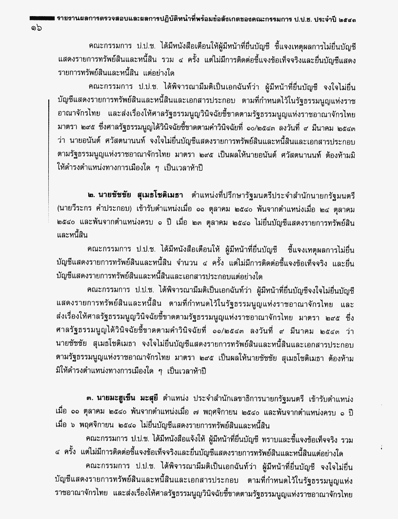 • รายงานผลการตรวจสอบและผลการปฏิบัติหน้าที่พร้อมข้อสังเกตของคณะกรรมการ ป.ป.ช. ประจำปี 2543