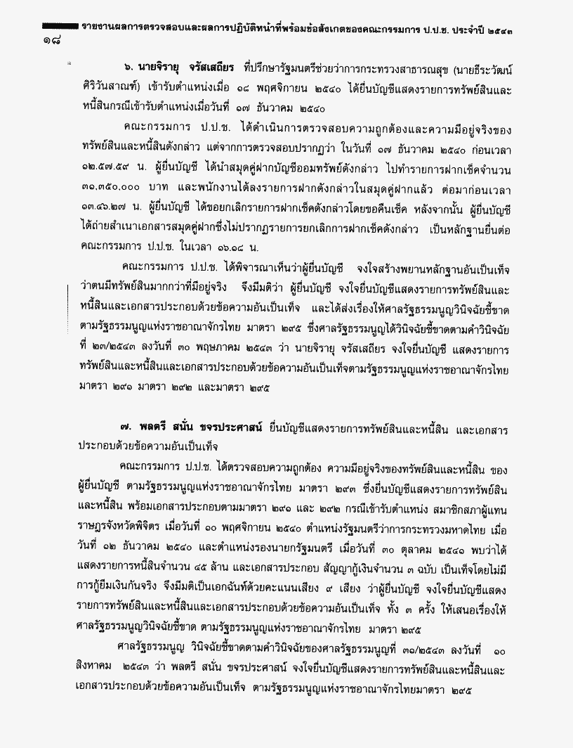 รายงานผลการตรวจสอบและผลการปฏิบัติหน้าที่พร้อมข้อสังเกตของคณะกรรมการ ป.ป.ช. ประจำปี 2543 |