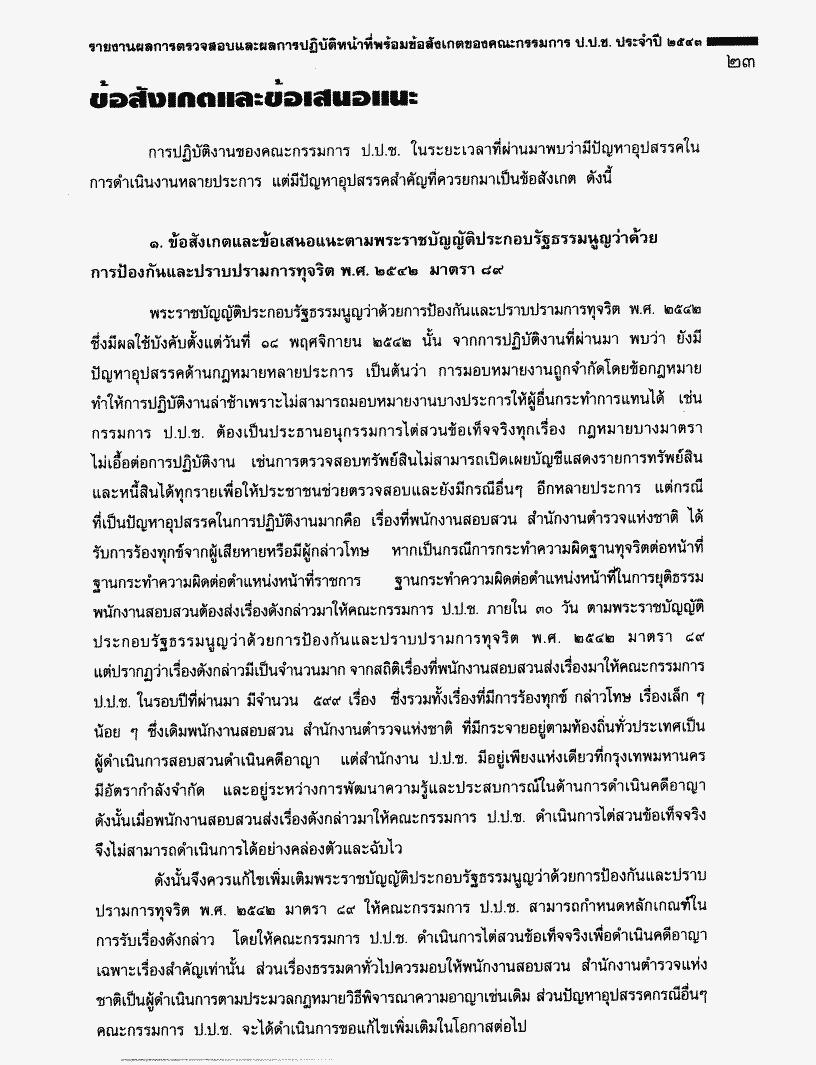 • รายงานผลการตรวจสอบและผลการปฏิบัติหน้าที่พร้อมข้อสังเกตของคณะกรรมการ ป.ป.ช. ประจำปี 2543