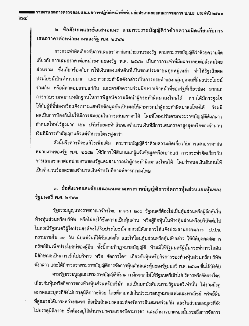 • รายงานผลการตรวจสอบและผลการปฏิบัติหน้าที่พร้อมข้อสังเกตของคณะกรรมการ ป.ป.ช. ประจำปี 2543
