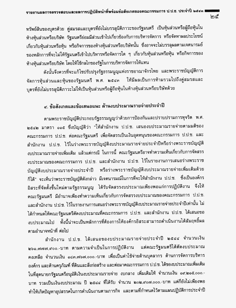 • รายงานผลการตรวจสอบและผลการปฏิบัติหน้าที่พร้อมข้อสังเกตของคณะกรรมการ ป.ป.ช. ประจำปี 2543