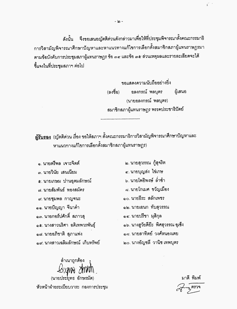 ขอเสนอญัตติด่วน เรื่อง ขอให้สภาฯ ตั้งคณะกรรมาธิการวิสามัญพิจารณาศึกษาปัญหาและหาแนวทางแก้ไขการเลือกตั้งสมาชิกสภาผู้แทนราษฎร |