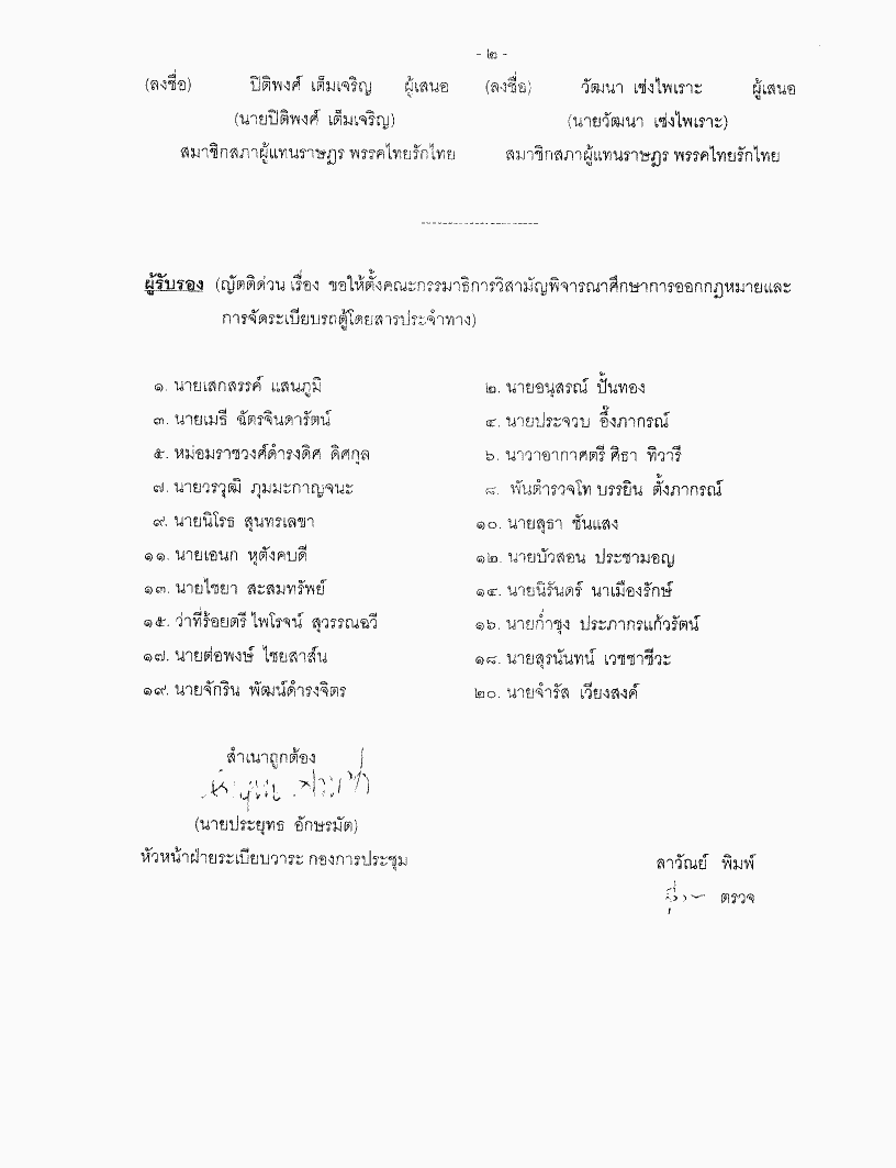 ขอเสนอญัตติด่วนเรื่อง ขอให้ตั้งคณะกรรมาธิการวิสามัญพิจารณาศึกษาการออกกฎหมายและการจัดระเบียบรถตู้โดยสารประจำทาง |