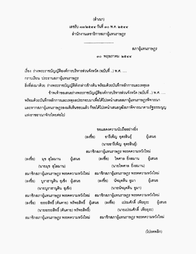 • ร่างพระราชบัญญัติองค์การบริหารส่วนจังหวัด (ฉบับที่..) พ.ศ. ....