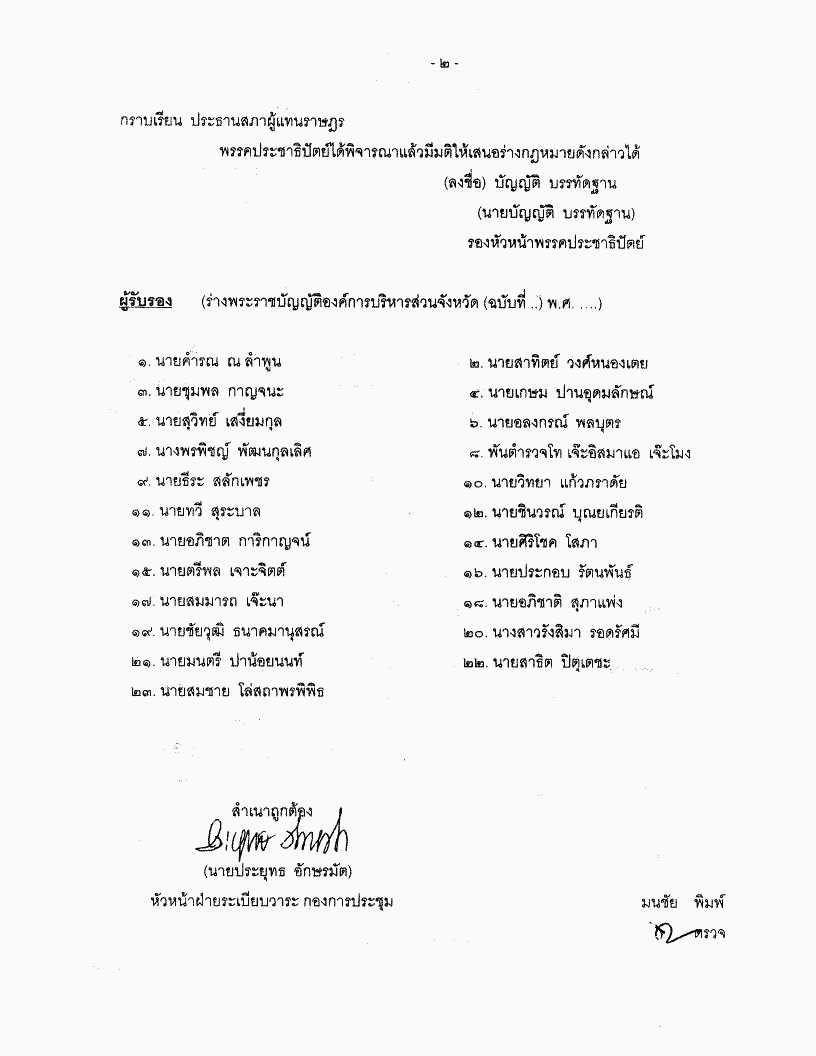 • ร่างพระราชบัญญัติองค์การบริหารส่วนจังหวัด (ฉบับที่..) พ.ศ. ....