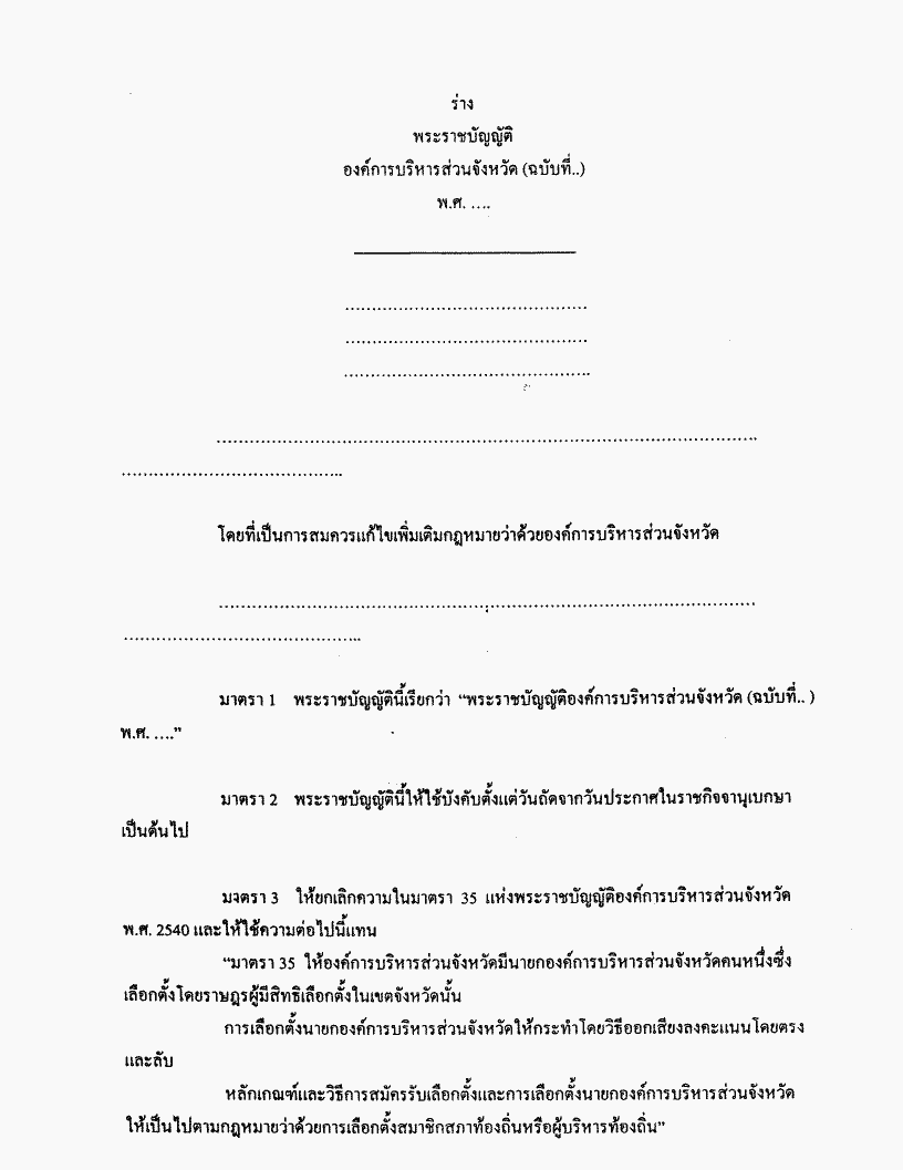 • ร่างพระราชบัญญัติองค์การบริหารส่วนจังหวัด (ฉบับที่..) พ.ศ. ....