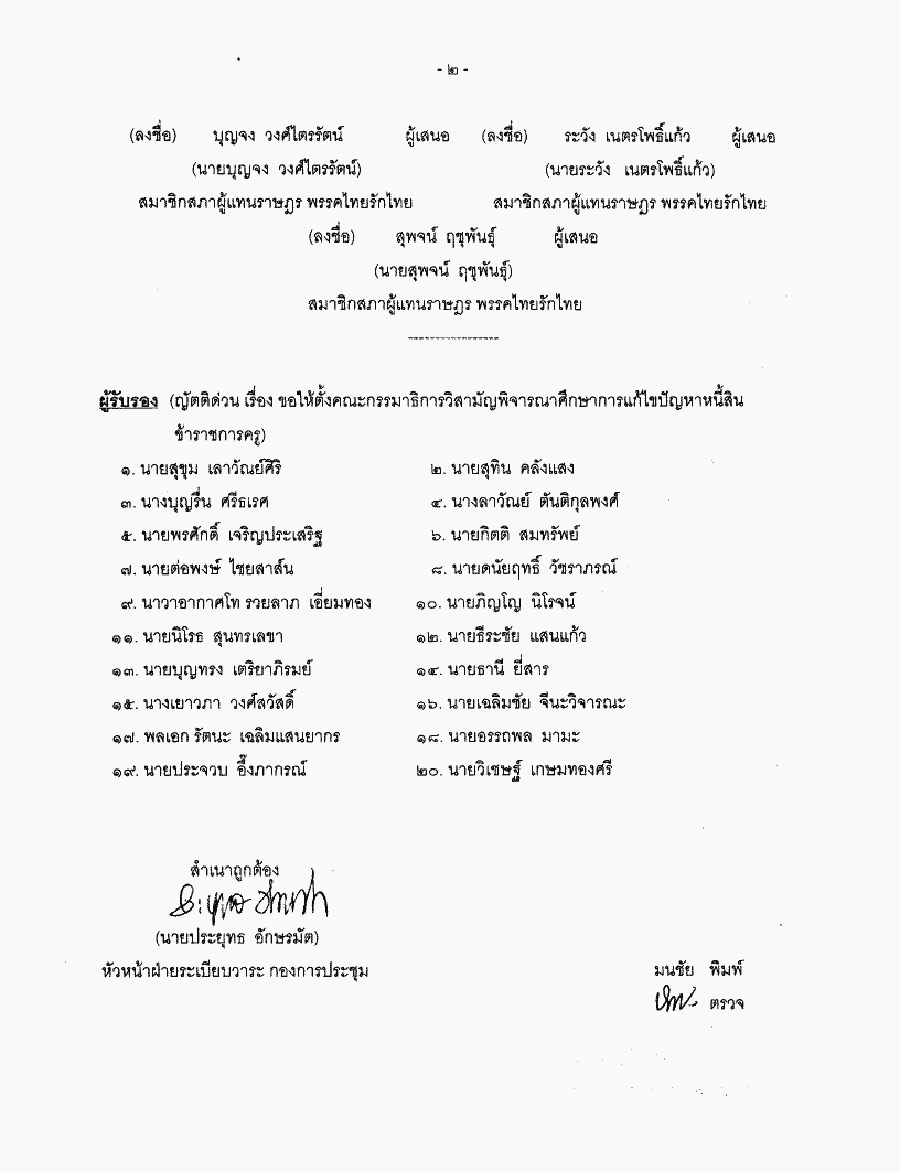 ขอเสนอญัตติด่วน เรื่อง ขอให้ตั้งคณะกรรมาธิการวิสามัญพิจารณาศึกษาการแก้ไขปัญหาหนี้สินข้าราชการครู |