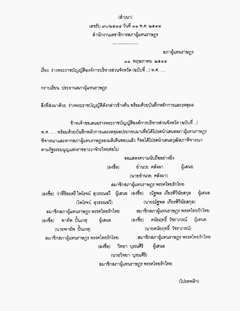 • ร่างพระราชบัญญัติองค์การบริหารส่วนจังหวัด (ฉบับที่..) พ.ศ. ....