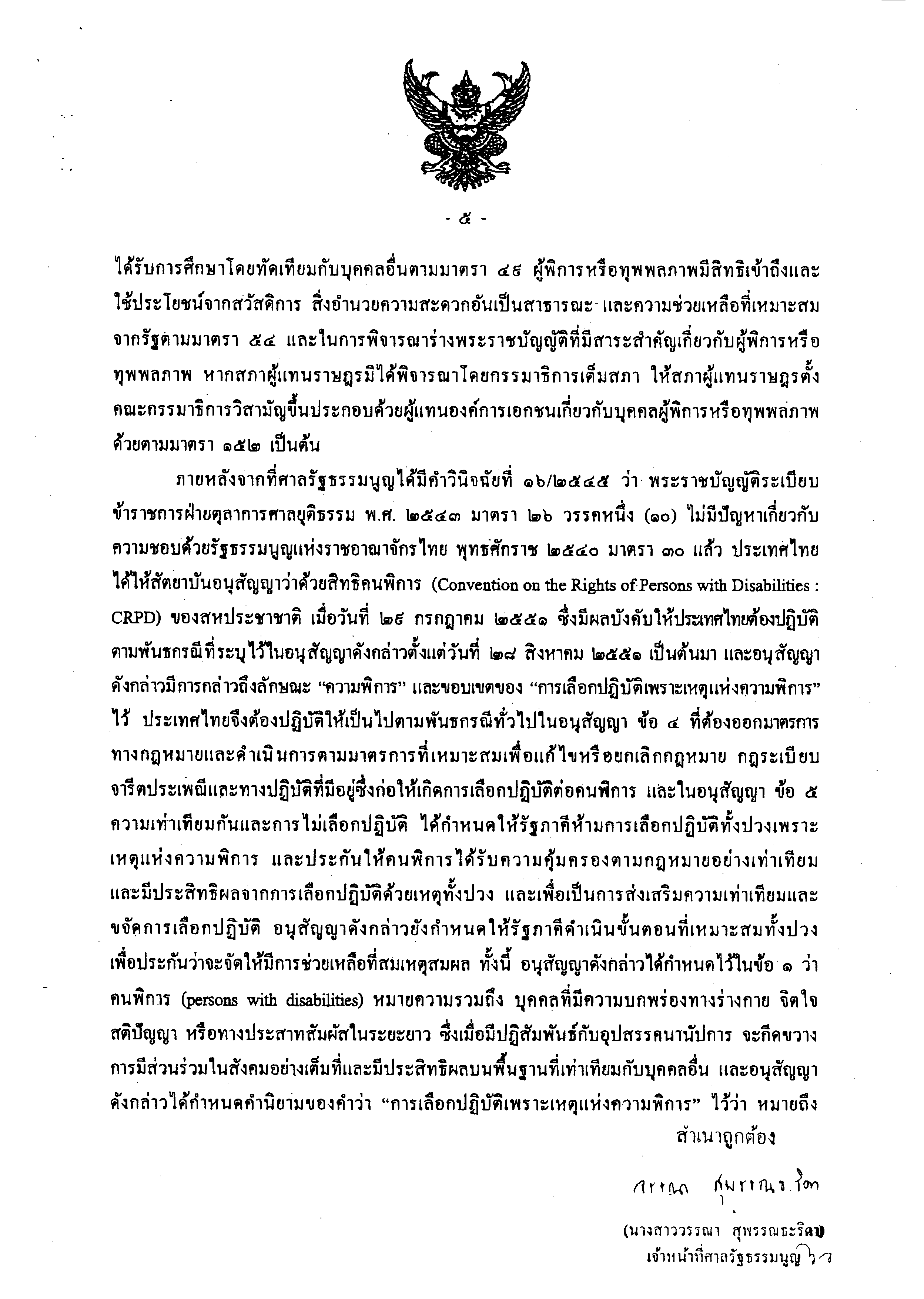 • ๒.๔ รับทราบคำวินิจฉัยศาลรัฐธรรมนูญ กรณีผู้ตรวจการแผ่นดินเสนอเรื่องขอให้ศาลรัฐธรรมนูญพิจารณาวินิจฉัยตามรัฐธรรมนูญ มาตรา ๒๔๕ (๑) ว่าพระราชบัญญัติระเบียบข้าราชการฝ่ายตุลาการศาลยุติธรรม พ.ศ. ๒๕๔๓ มาตรา ๒๖ วรรคหนึ่ง (๑๐) มีปัญหาเกี่ยวกับความชอบด้วยรัฐธรรมนูญ มาตรา ๓๐ หรือไม่