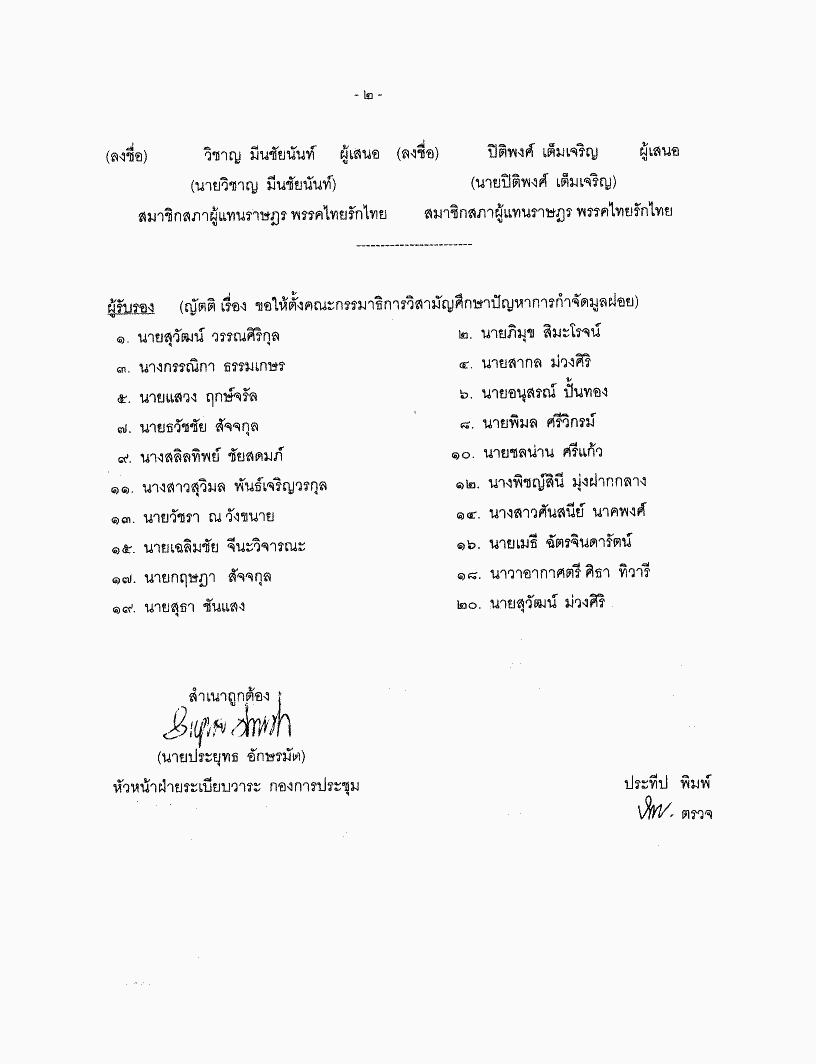 • ขอเสนอญัตติ เรื่อง ขอให้ตั้งคณะกรรมาธิการวิสามัญศึกษาปัญหาการกำจัดมูลฝอย