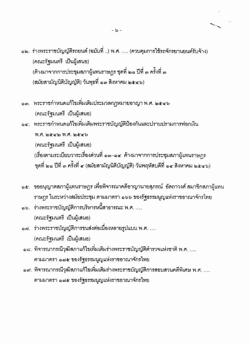 • ระเบียบวาระการประชุมสภาผู้แทนราษฎร ชุดที่ ๒๑ ปีที่ ๓ ครั้งที่ ๑๒ (สมัยสามัญนิติบัญญัติ)