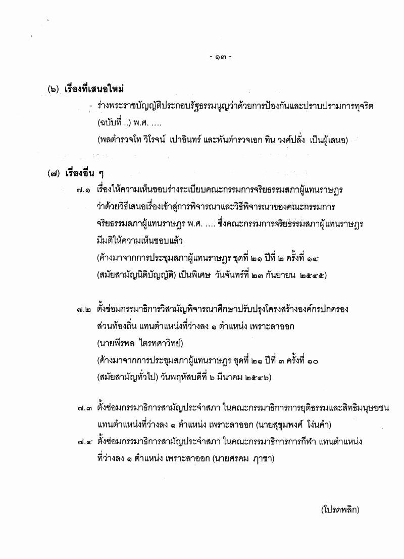 • ระเบียบวาระการประชุมสภาผู้แทนราษฎร > ชุดที่ 21 > ปีที่ 3 > สมัยสามัญนิติบัญญัติ > ครั้งที่ 12