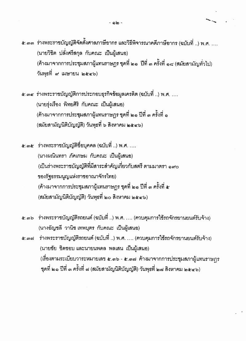 ชื่อเอกสาร :   ระเบียบวาระการประชุมสภาผู้แทนราษฎร ชุดที่ ๒๑ ปีที่ ๓ ครั้งที่ ๑๒ (สมัยสามัญนิติบัญญัติ)