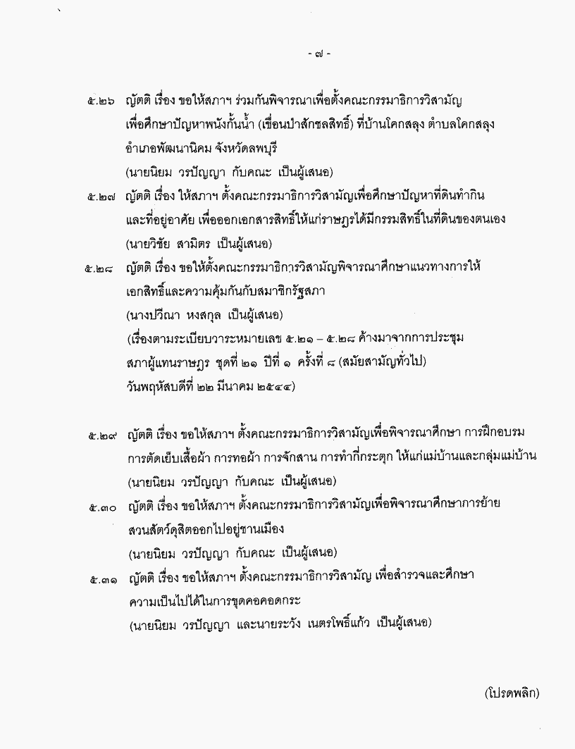 • ระเบียบวาระการประชุมสภาผู้แทนราษฎร ชุดที่ ๒๑ ปีที่ ๑ ครั้งที่ ๑๒ (สมัยสามัญทั่วไป) วันพฤหัสบดีที่ ๕ เมษายน ๒๕๔๔