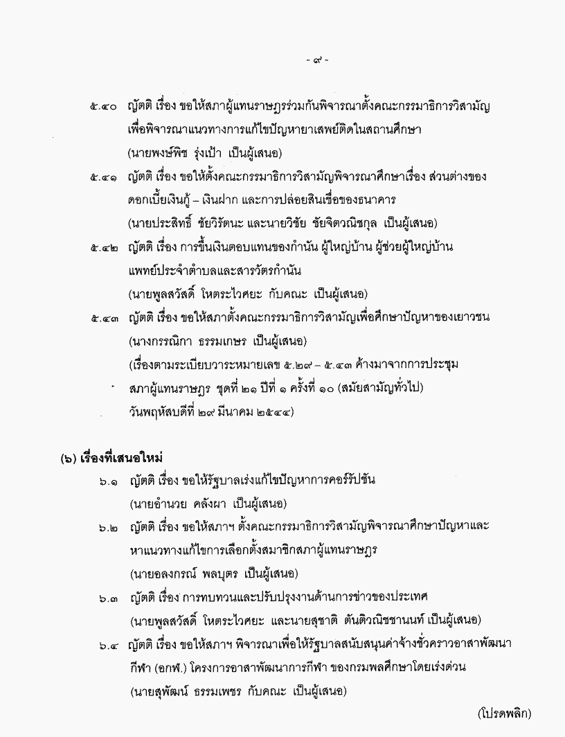 • ระเบียบวาระการประชุมสภาผู้แทนราษฎร ชุดที่ ๒๑ ปีที่ ๑ ครั้งที่ ๑๒ (สมัยสามัญทั่วไป) วันพฤหัสบดีที่ ๕ เมษายน ๒๕๔๔