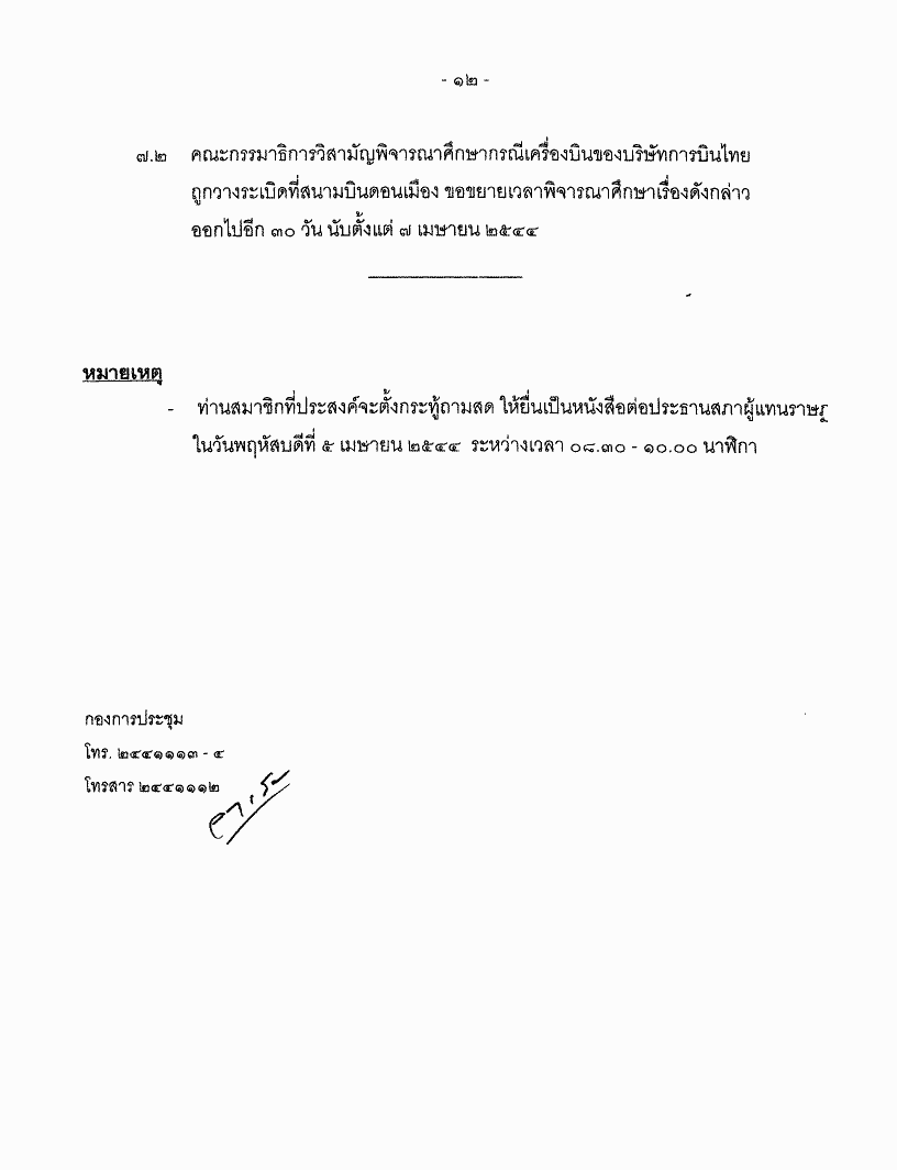 • ระเบียบวาระการประชุมสภาผู้แทนราษฎร ชุดที่ ๒๑ ปีที่ ๑ ครั้งที่ ๑๒ (สมัยสามัญทั่วไป) วันพฤหัสบดีที่ ๕ เมษายน ๒๕๔๔