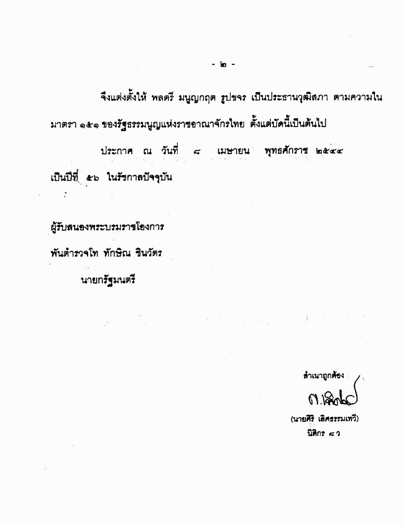 ชื่อเอกสาร :   ๒.๑ รับทราบพระบรมราชโองการโปรดเกล้าฯ แต่งตั้งประธานวุฒิสภา