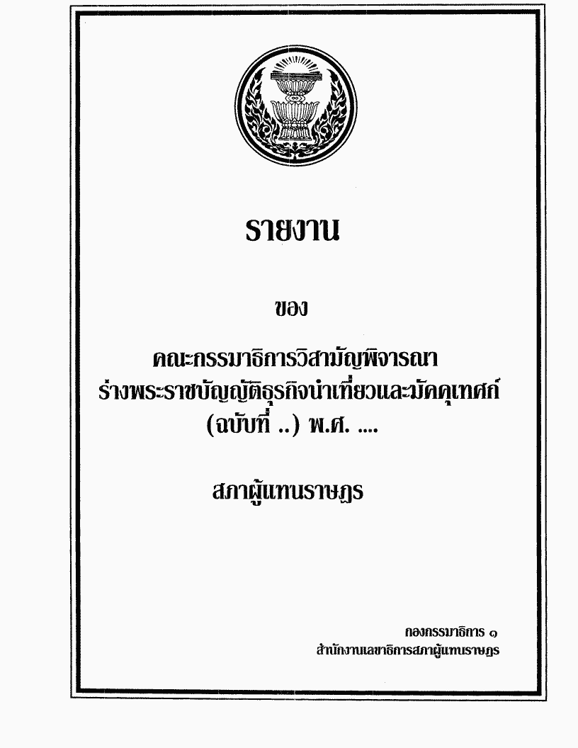 ร่างพระราชบัญญัติธุรกิจนำเที่ยวและมัคคุเทศก์ (ฉบับที่ ...) พ.ศ. ..... |