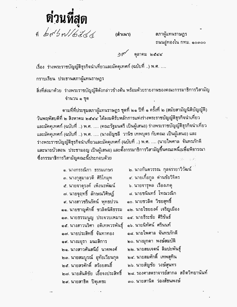 • ร่างพระราชบัญญัติธุรกิจนำเที่ยวและมัคคุเทศก์ (ฉบับที่ ...) พ.ศ. .....
