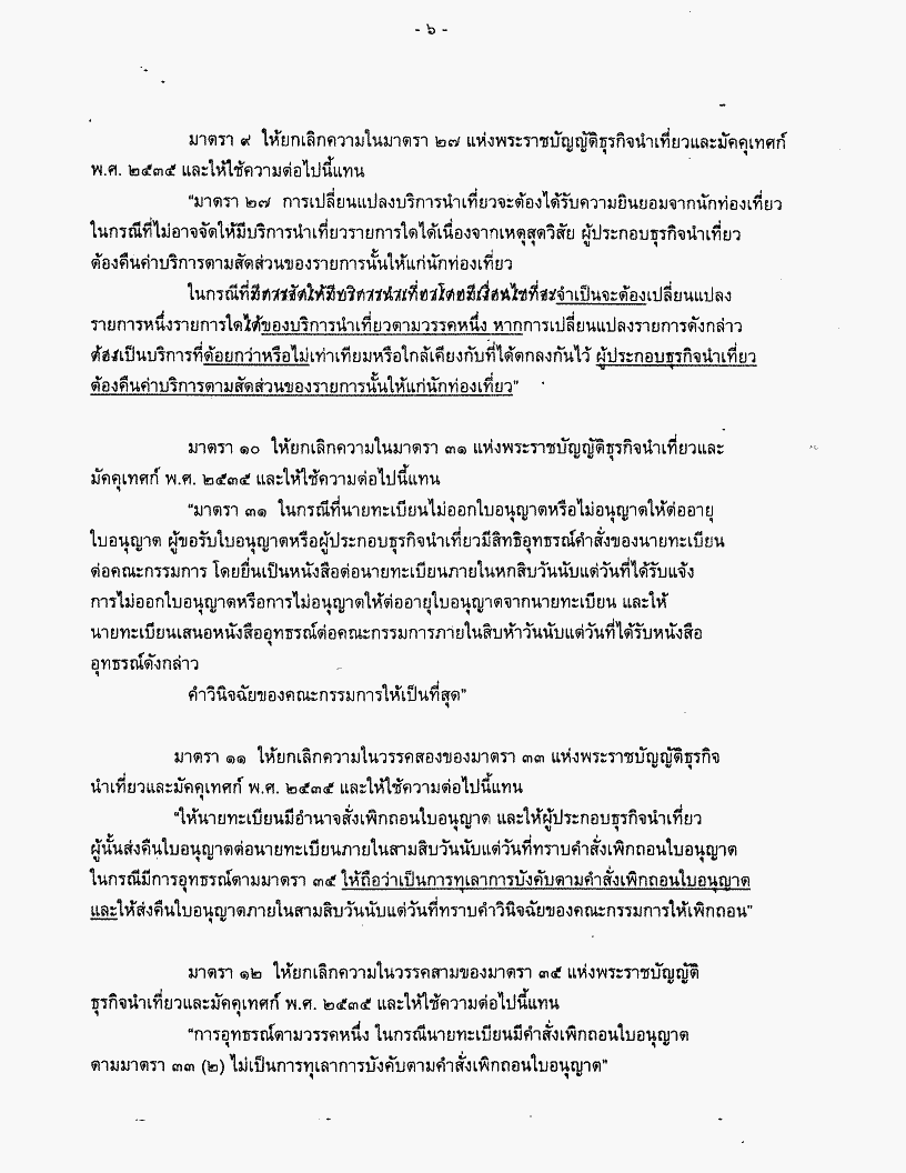 • ร่างพระราชบัญญัติธุรกิจนำเที่ยวและมัคคุเทศก์ (ฉบับที่ ...) พ.ศ. .....